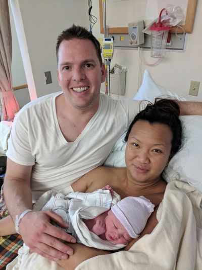 Turns out I was already 4cm dilated, the Braxton Hicks contractions I was having earlier in the week were doing some work. I was fortunate I didn't need any manual dilation to get there before it was unsafe for the baby. They did give me a small amount of pitocin and an IV line. This was annoying, I could have done without it, but it was good to have in case of an emergency. I had an oral blood pressure medication and that kept my blood pressure under control for the entire labor. I tried to get some sleep from 9pm-2am, but I was too anxious to sleep. I listened to my husband sleeping soundly in the cot by the bed. They also came in to check my pressure every 2 hours. Totally unnecessary, but we had a travel nurse so she didn't know the protocol.